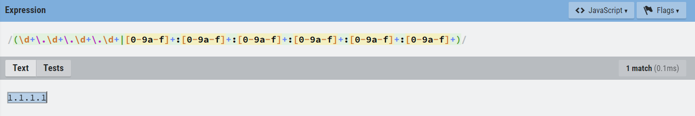ip 1.1.1.1 이나 8.8.8.8 을 넣어주면 1 match라고 뜬다.