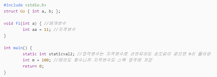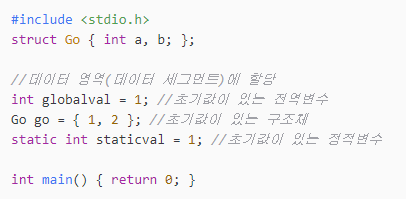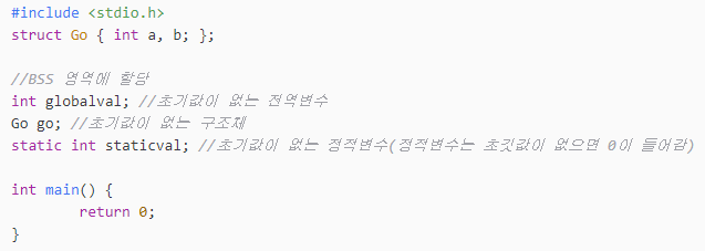 이때문에 C 코드를 작성할 때 초기화되지 않은 전역 변수의 값은 모두 0이 된다.