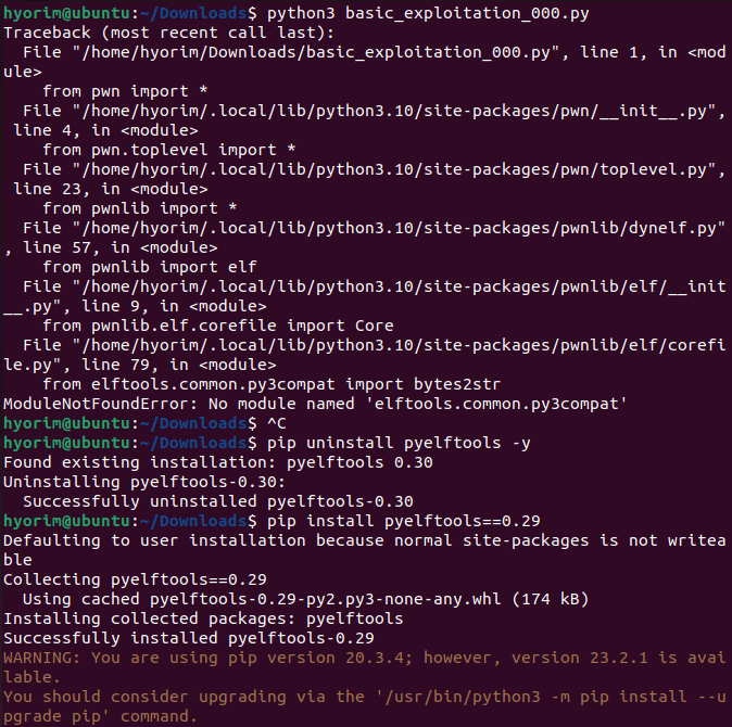 중간에 오류가 나서 pyelftools 버전을 0.30에서 0.29로 낮춰주었다.