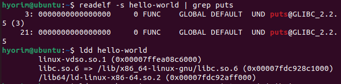 -> 라이브러리 함수 호출 시 함수 이름으로 라이브러리에서 심볼 탐색