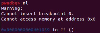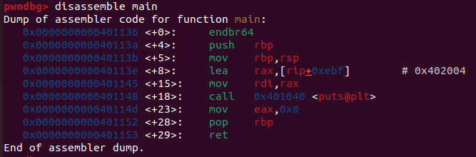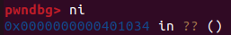 아직 puts 주소를 찾기 전이므로 puts GOT 엔트리 0x404018에는 함수 주소 대신 .plt 섹션 어딘가의 주소 0x401030이 적혀있다.