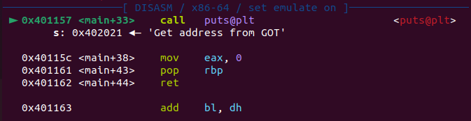 puts("Get address from GOT");
