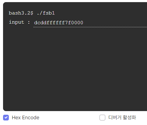 -> little endian 하면 dcddffffff7f0000 -> Hex encode