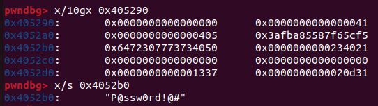0x405290: secret 청크, 해제되어서 tcache 엔트리에 들어감