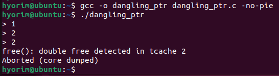 그러나 free 함수는 청크를 ptmalloc에 반환하기만 할 뿐, 청크의 주소를 담고 있던 포인터를 초기화하지는 않기 때문에,