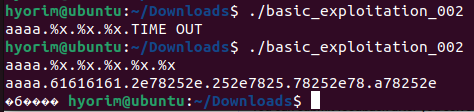 첫번째 %x에서 aaaa를 인자로 받는 것을 알 수 있다.