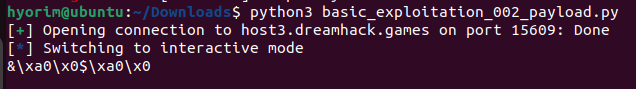 그리고 sendline으로 payload 값을 전송하고 interactive를 통해 쉘에 접속한다.