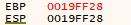 복원된 EBP 값은 19FF28이며, 이 값은 main() 함수의 EBP 값입니다. 이제 add() 함수의 스택 프레임이 해제되었습니다.