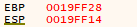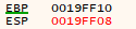 결국 이 두 변수를 스택에 저장하기 위해서는 총 8바이트가 필요한 것입니다. 그래서 ESP에서 8을 빼 두 변수에게 필요한 메모리 공간을 확보(예약)한 것입니다.