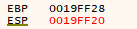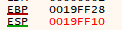 즉, add() 함수를 시작할 때의 ESP 값(19FF10)을 EBP에 넣어 두었다가 함수가 종료될 때 ESP를 원래대로 복원시키는 목적으로 사용하는 것입니다.