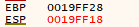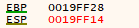 'SUB'는 빼기 명령어입니다. 'ESP 값에서 8을 빼라' 라고 해석할 수 있습니다. 현재 ESP = 19FF28입니다.