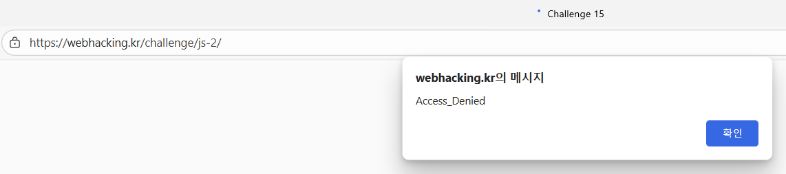 문제 페이지에 접속하면 Access_Denied 라는 알림창이 뜨고, 확인을 누르면 / 로 이동됩니다.