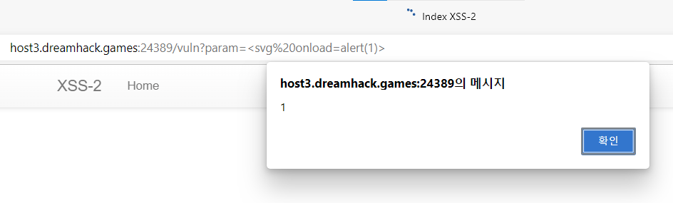<svg onload=alert(1)>을 실행해보니 vuln 페이지에서 alert 메시지가 출력된다. 그럼 memo에서도 xss 우회가 되지 않을까.