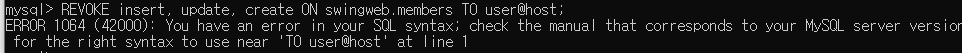 - WITH GRANT OPTION: 이 옵션을 사용하면 TO 절의 대상도 자신이 받은 권한을 다른 유저에게 부여할수 있다.