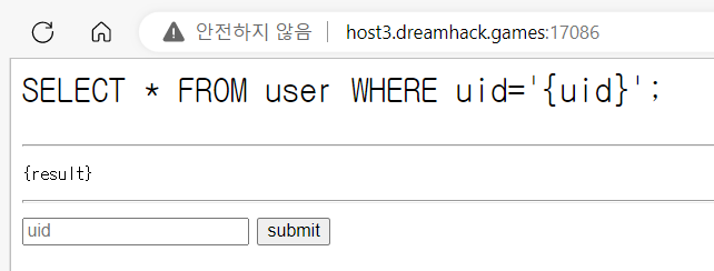 입력한 쿼리는 URL의 uid 파라미터에 직접 입력해야 한다.