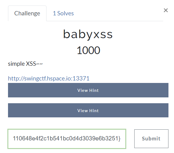 swingctf.hsapce.io:13371/?q="%20onerror="alert(1)
