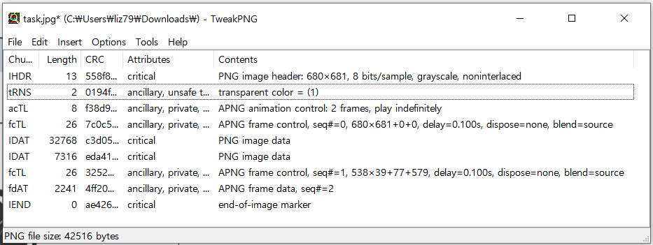 TweakPNG x86을 사용하여 png로 고친 파일을 열어주었다.