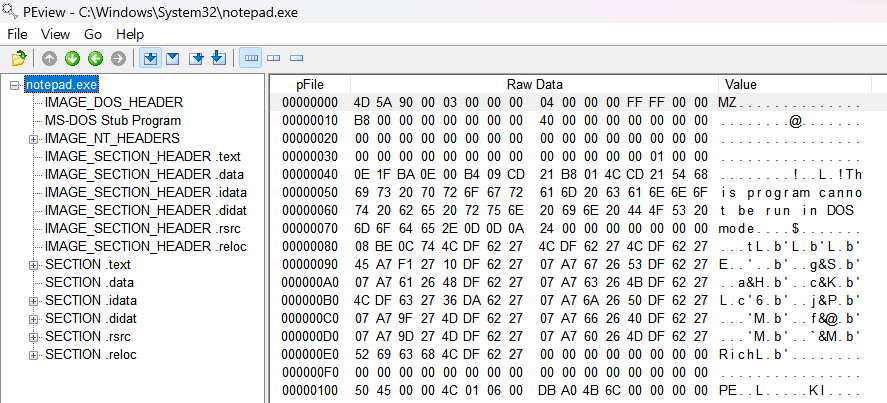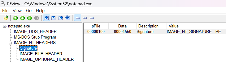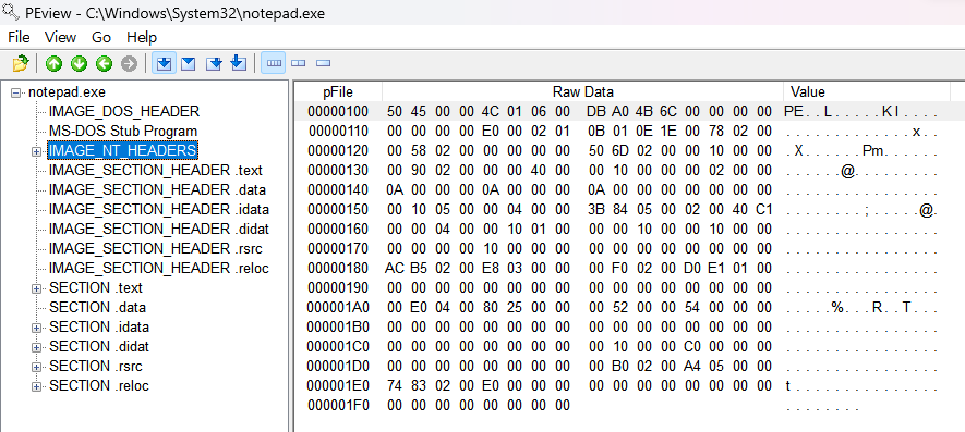 notepad.exe PE 헤더 분석