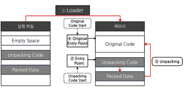 - 운영체제의 Loader가 패킹된 실행파일을 메모리에 로딩한다.