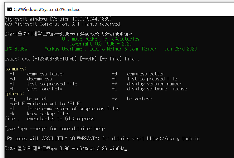 위의 링크에서 upx-3.96-win64.zip 을 다운받는다.