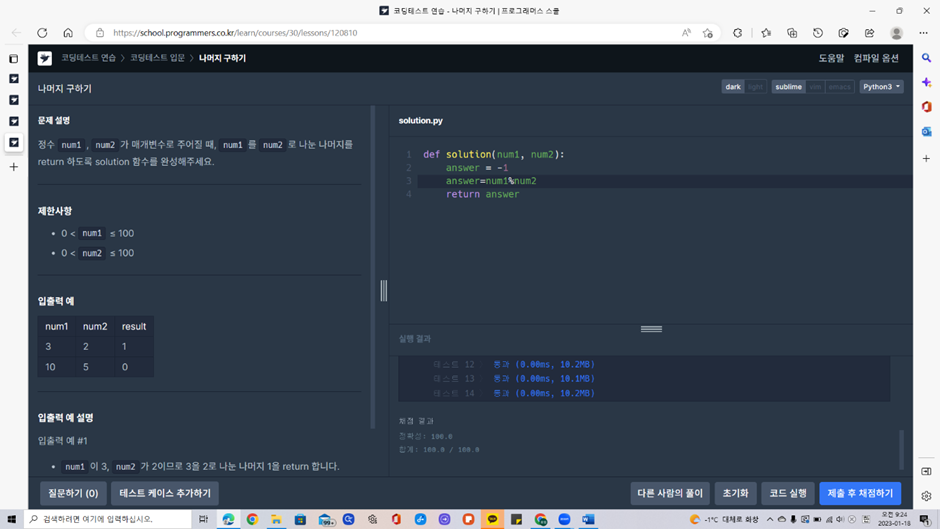 #3 하) 나머지 구하기 (프로그래머스-나머지 구하기)