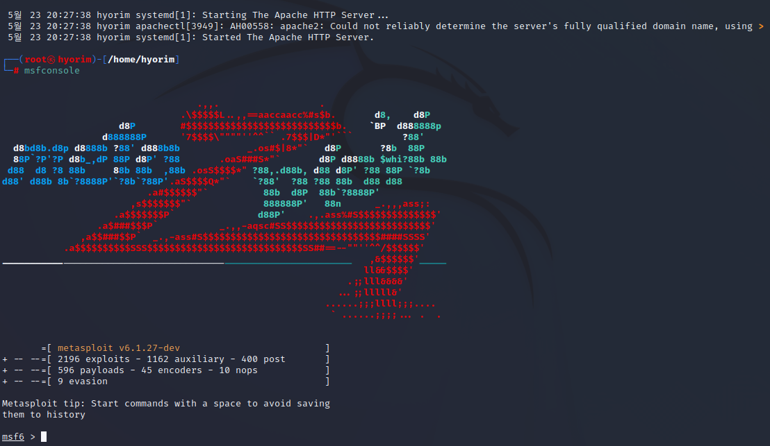 8. msfvenom 으로 생성했던 페이로드 세팅