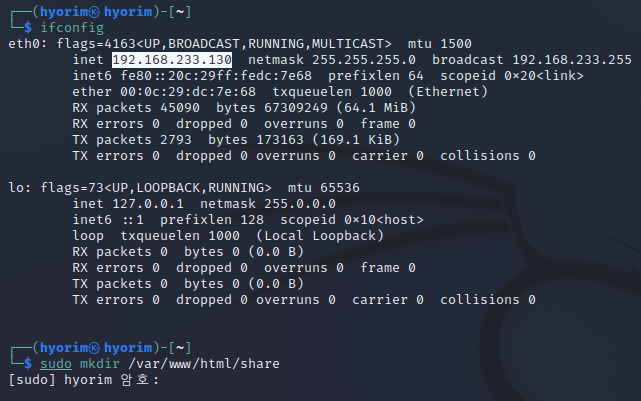 4. Windows 7 에서 http://공격자 ip/share 접속