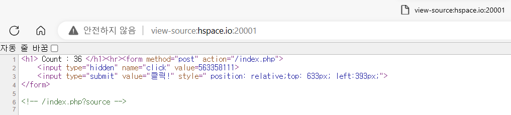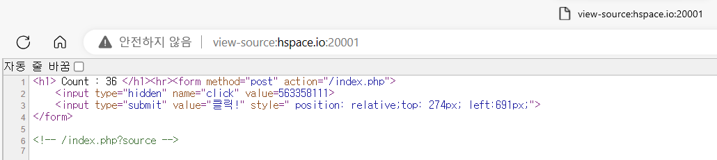 클릭! 버튼은 이리저리 옮겨다닌다. 옮겨다니는 위치에 규칙이 있는 것 같지는 않고 그냥 랜덤한 좌표값으로 보인다.