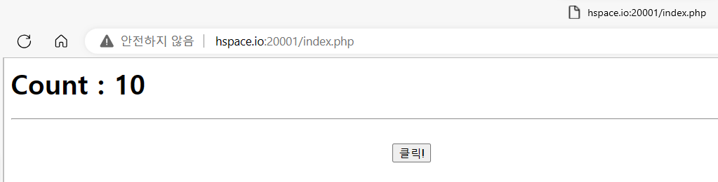 Count : 0 부터 시작해서 클릭! 버튼을 누르면 Count가 1씩 증가한다.