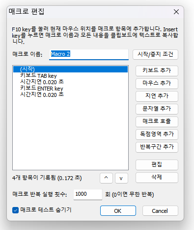 시간 지연을 굳이 넣어준 이유는 컴퓨터가 과열되고 반복이 너무 빠르면 꼬여서 자꾸 이상한 창이 뜨기 때문이다.