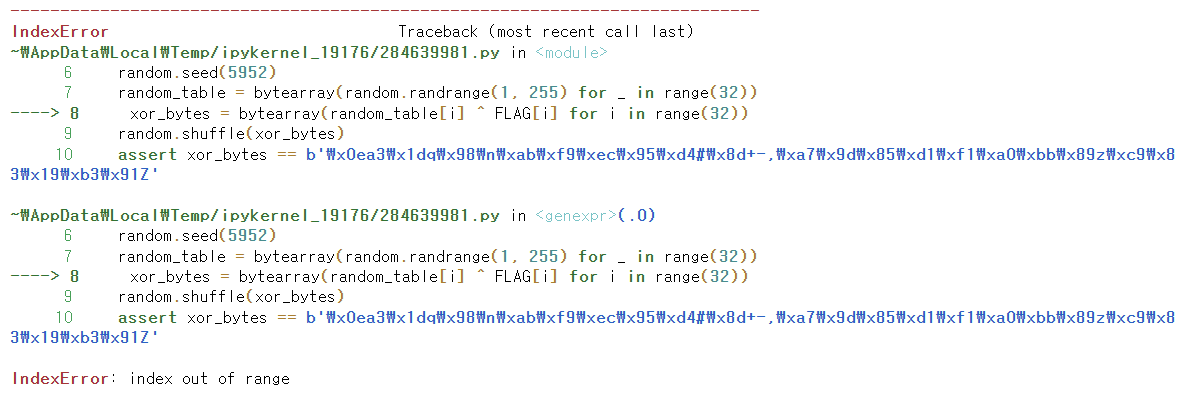 xor_bytes = bytearray(random_table[i] ^ FLAG[i] for i in range(32)) #랜덤한 테이블과 xor