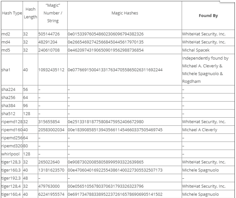 A==B 를 비교하면 자료형이 달라도 데이터만 일치하다면 TRUE 값을 반환하는 이 것을 PHP에서 Magic Hash라고 한다. 이를 방지하려면 A===B라고 표기하자.