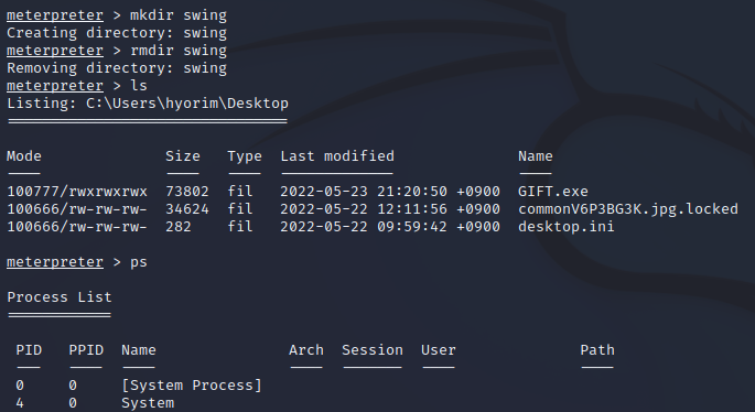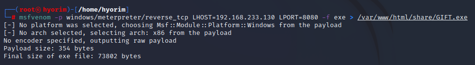> : 경로를 설정한다. 백도어 파일 생성 위치는 share 디렉토리 아래이다.