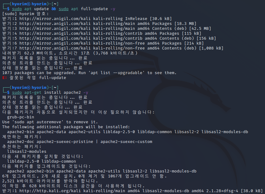 다시 없앴다가 ls 명령어, ps 명령어 이것저것 써보기.