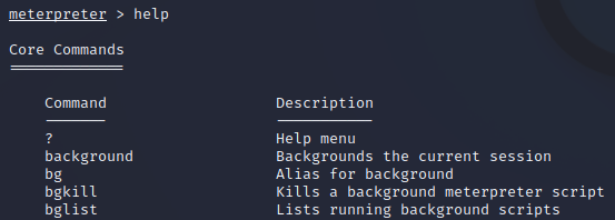 help 라고 입력하면 쓸 수 있는 명령어 목록이 출력된다.