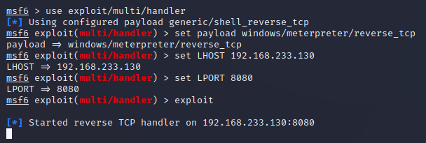 8. msfvenom 으로 생성했던 페이로드 세팅