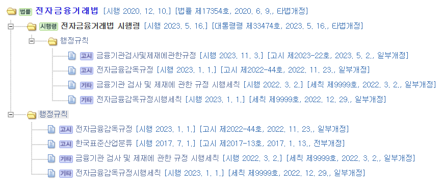 | 전자금융 | 전자금융거래법 | 전자금융거래법 시행령 | |