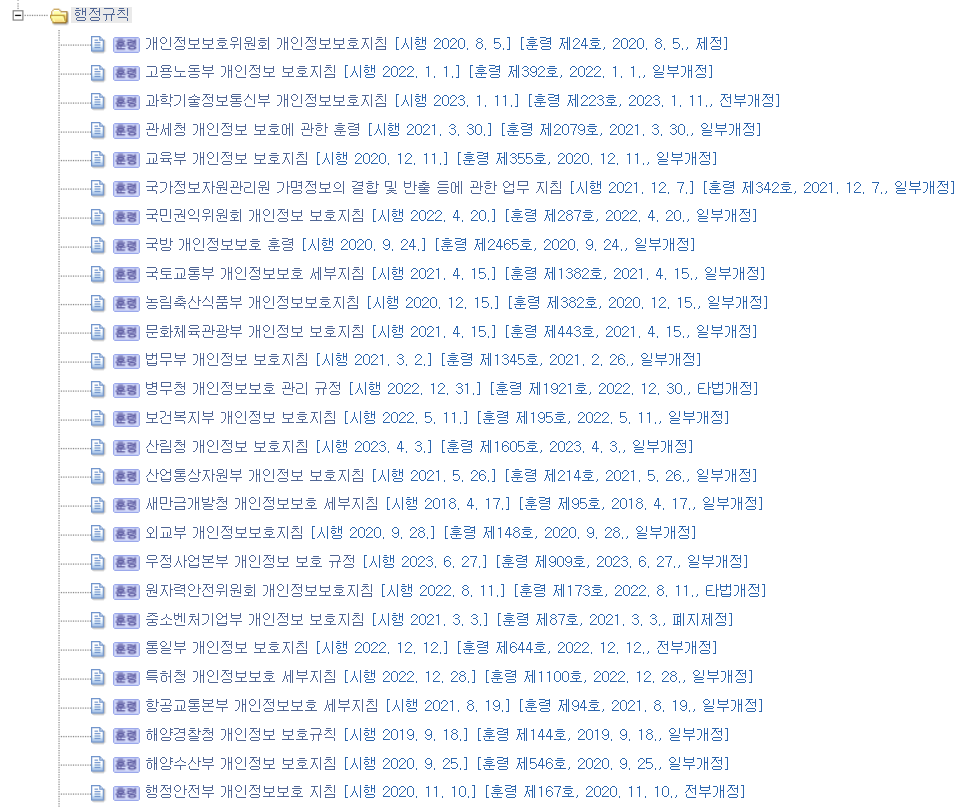| 분야 | 법 | 시행령 | 행정규칙 |