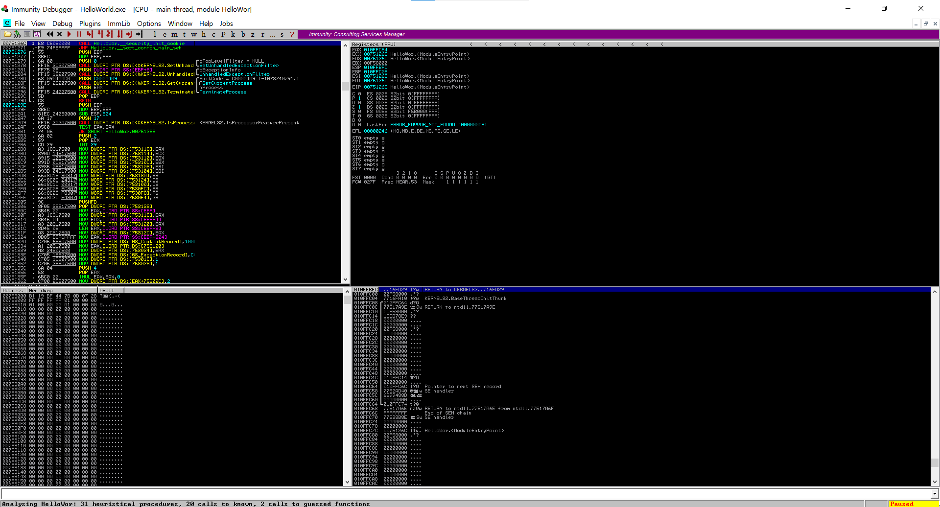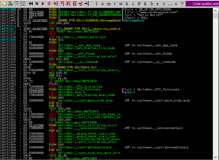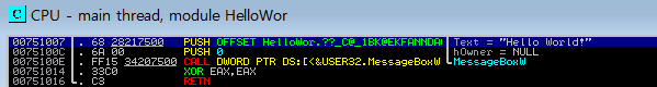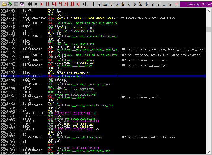 CALL HelloWor.wmain 이 메인함수이다.