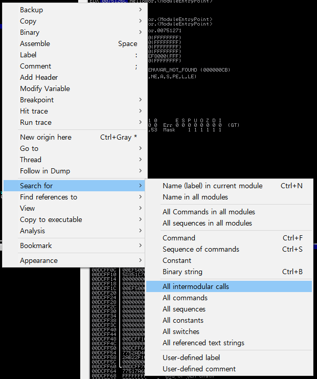 3. API 를 검색한다. 마우스 우클릭 -> Search for -> All intermodular calls