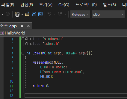 3) 필요한 부분을 선택 후 Ctrl + E 으로 "Hello Security World!" 작성