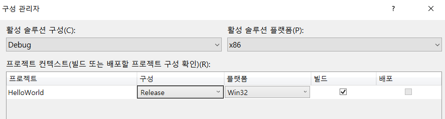 빌드 -> 구성 관리자 -> Release