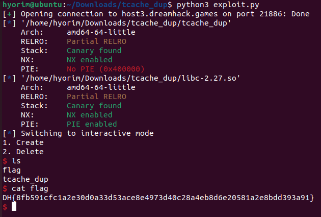 tcache dup 취약점을 이용해 print GOT를 get_shell addr로 overwrite한다.