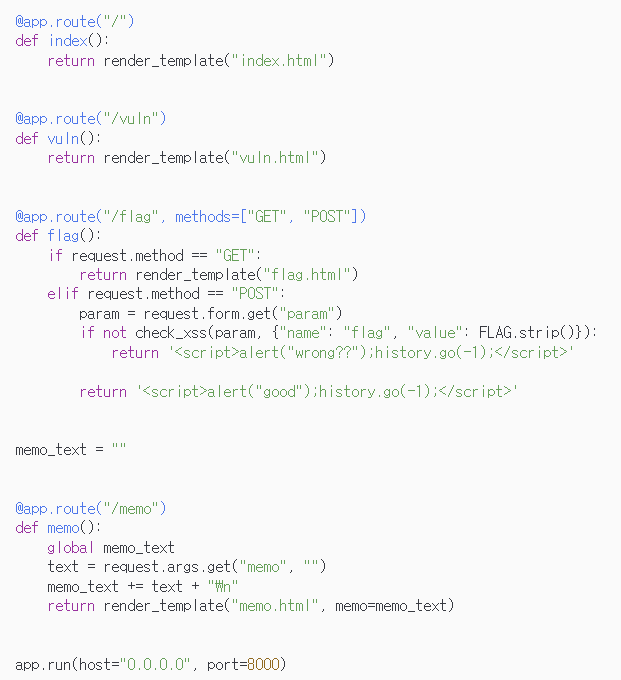memo가 flag를 반환해 출력한다는 것이다.