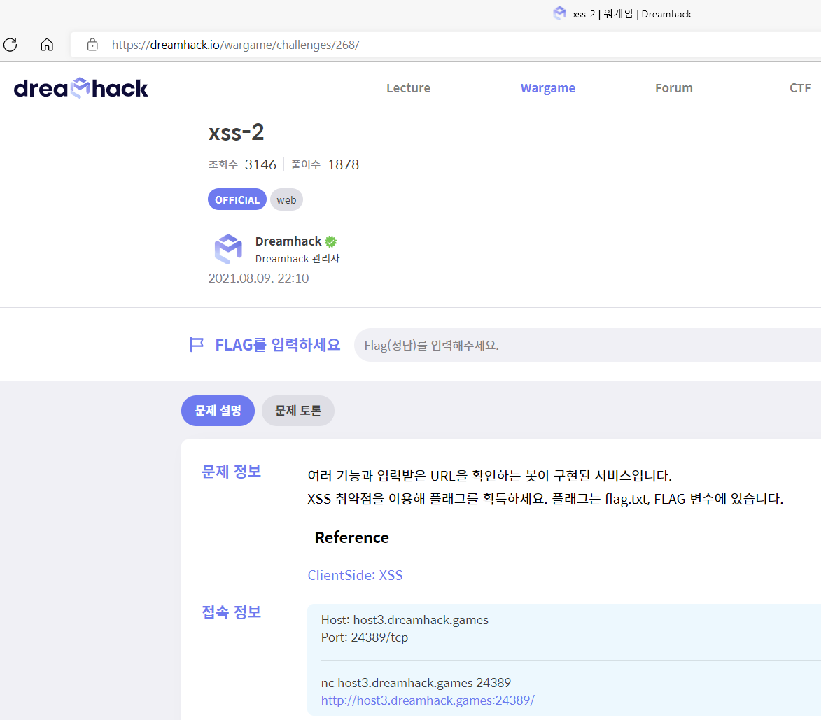 여러 기능과 입력받은 URL을 확인하는 봇이 구현된 서비스입니다. XSS 취약점을 이용해 플래그를 획득하세요. 플래그는 flag.txt, FLAG 변수에 있습니다. Reference ClientSide: XSS