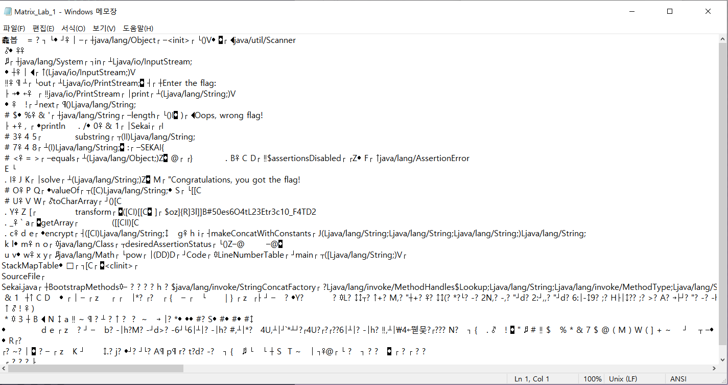다운받은 파일을 열어보니 이상한 문자들이 나온다.