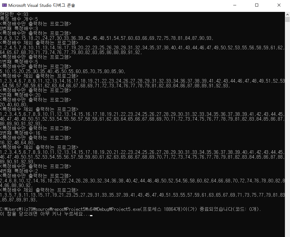 랜덤한 범위 내에 입력한 특정한 배수만, 특정한 배수를 제외한 수만 출력하는 프로그램