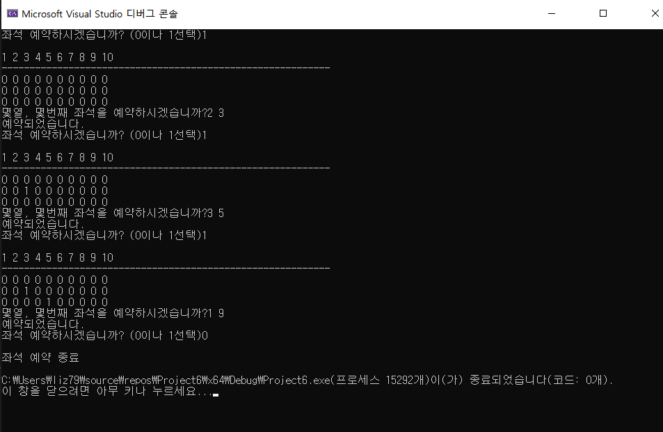 영화관 좌석 예약하는 프로그램