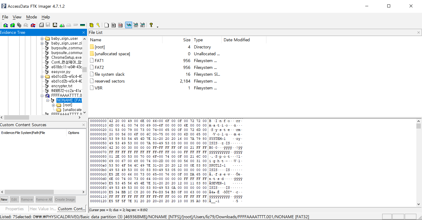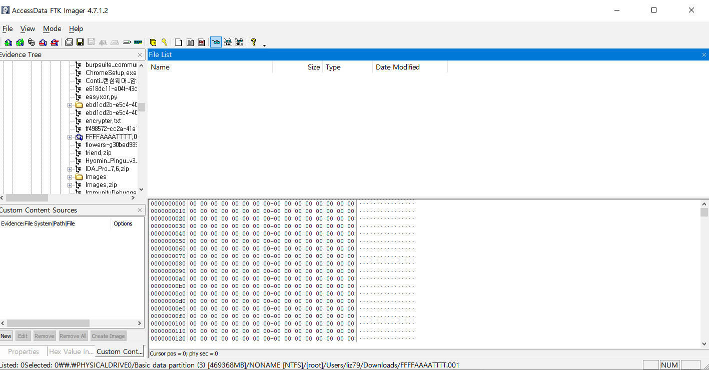 파일을 FTK imager를 사용해 열어보겠다.